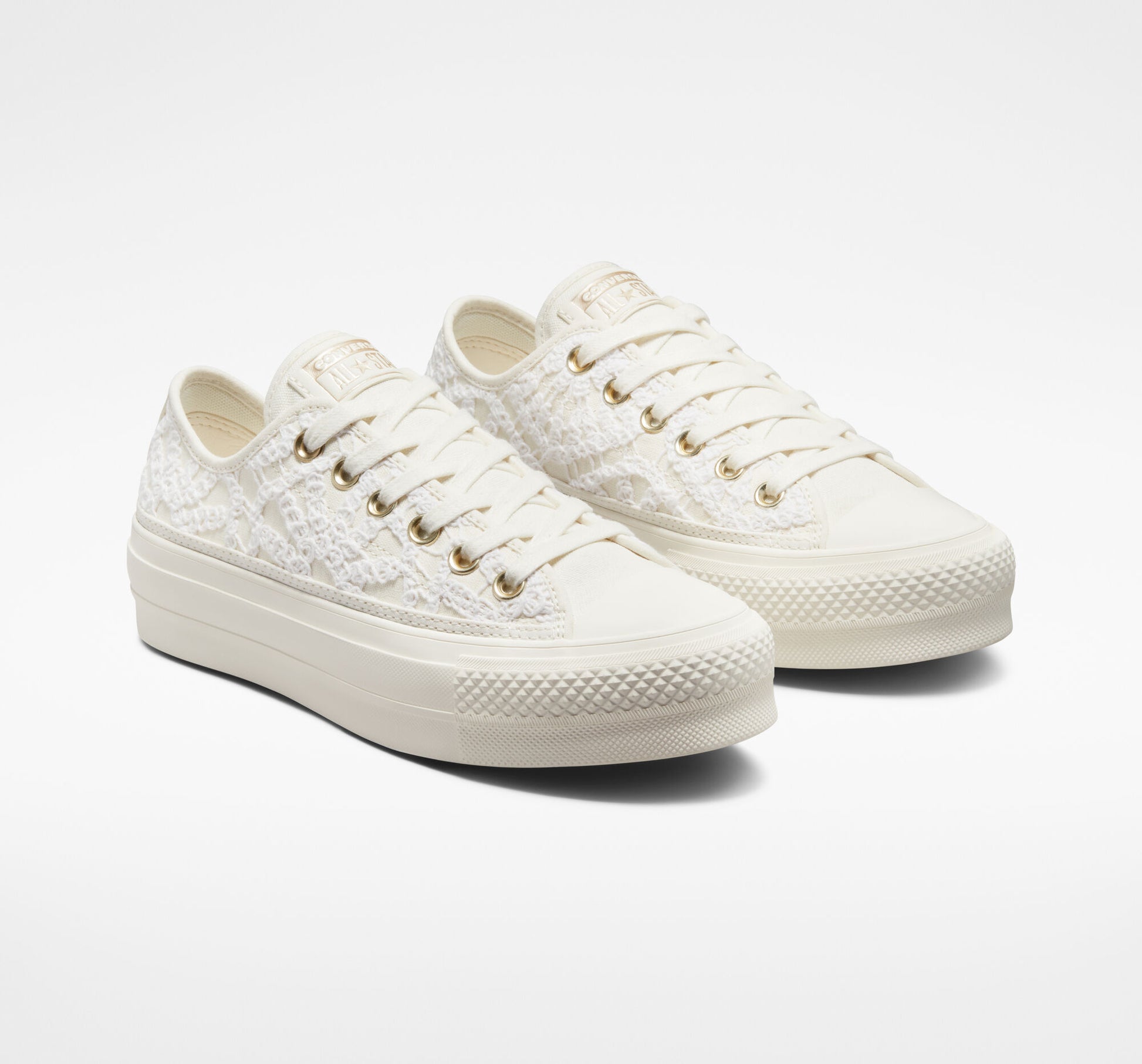Just in time for concert season, these platform Chucks give your style a lift with a new, boho-inspired design. A crocheted cotton upper and subtle hits of shiny gold dress up the iconic silhouette, while signature Chuck Taylor design details keep your look timeless.